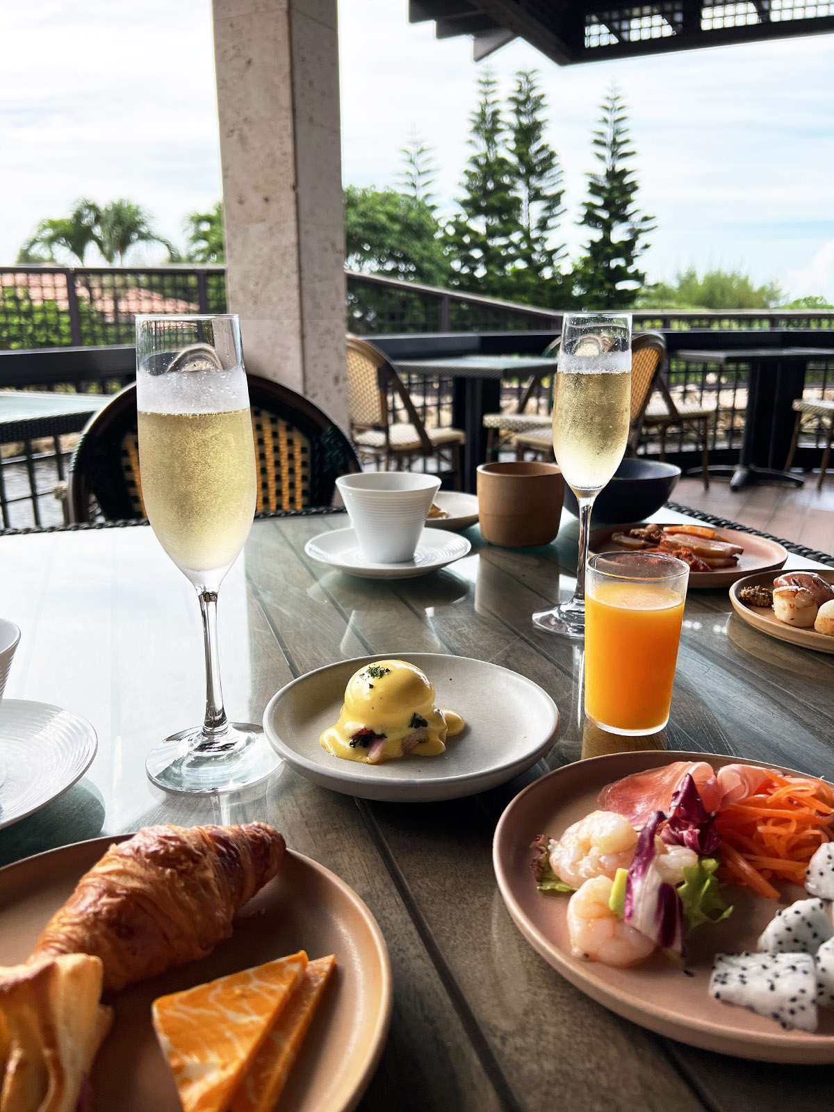 朝食はビュッフェスタイルで、Louis Roederer Brut Premierのフリーフロー付き。Louis Roederer Brut Premierは、スタンダードキュヴェの中では好きな部類の味。バランスが取れていて、食事にも向いている。