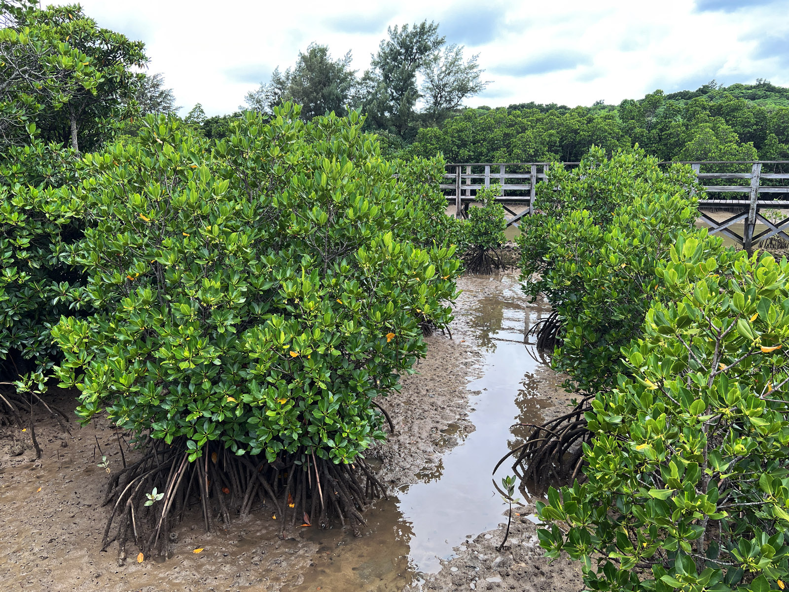 歩いて5分ほどのデッキが続いており、マングローブ林の中を足を濡らすことなく渡ることができる。運転手さんがデッキの先に車を回しておいてくれると言うので、散歩。