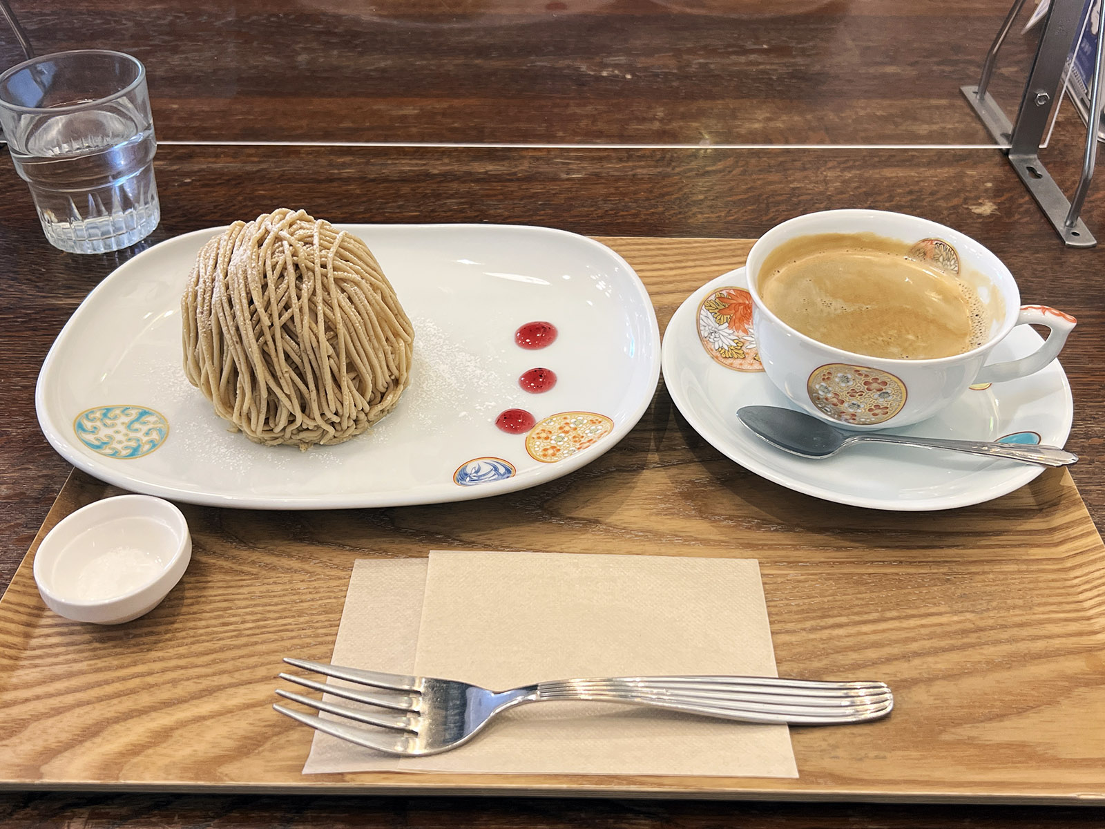 2日目は朝食後宿をチェックアウト。昼前のロマンスカーで帰京。電車までは少し時間があり、湯本駅付近で時間を潰す。箱根駅伝があるので、結構な人出だった。俺とパートナーはお土産を買うのもそこそこに、まずはどこかで落ち着こうと、湯本駅の駅前通りにある手作りモンブランが売りの喫茶店に。飛び込みで入ったメインストリートの店で、失礼ながら最初は期待せずにいたのだが、注文を受けてから絞るモンブランで、これが思いの外おいしく、栗のペーストは栗の味が濃くなめらか、中も軽い口当たりで、大変おいしかった。