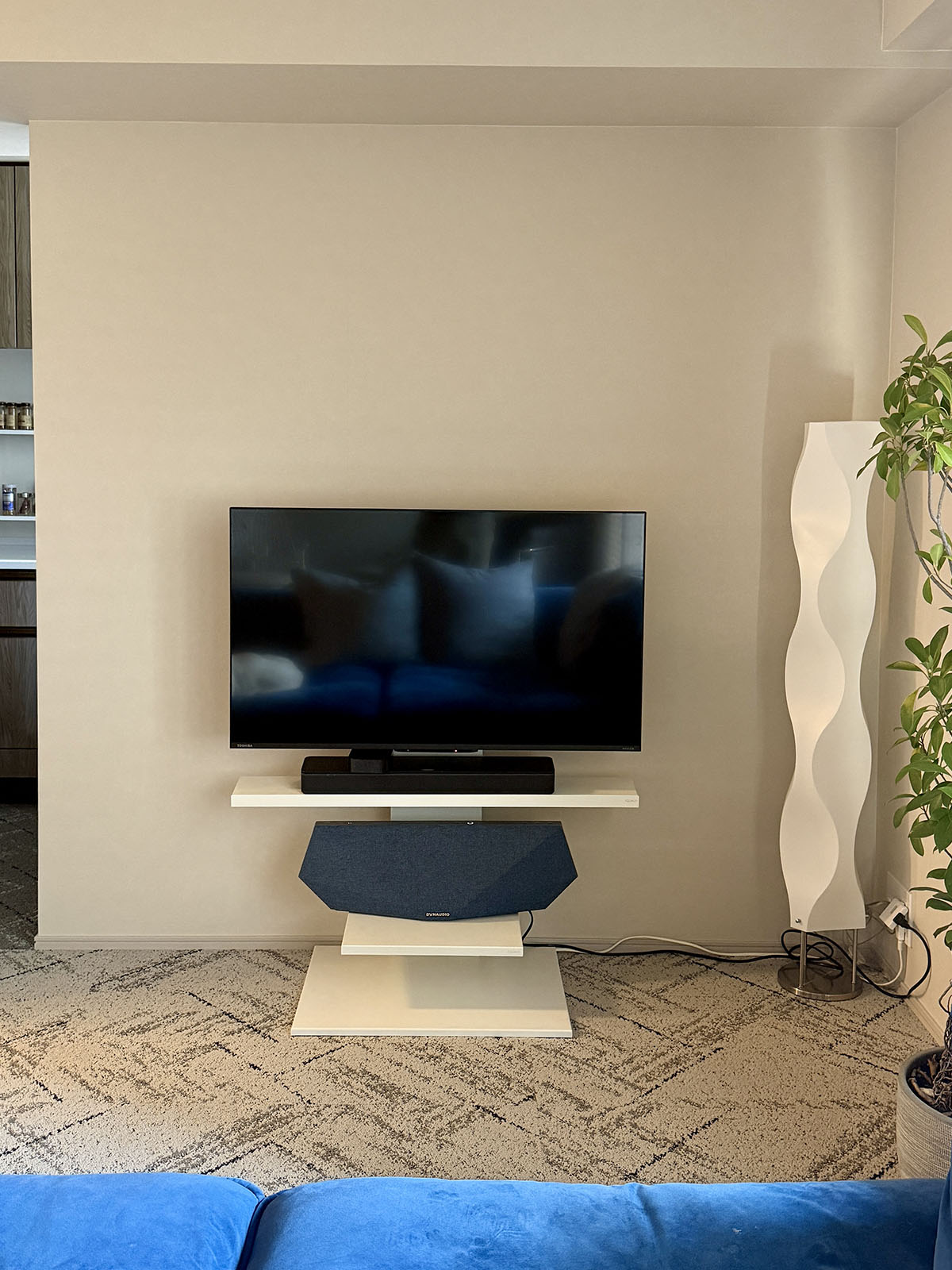 そして一番の悩みどころがリビング。リビングスペースを当初からリビングとして使うことにしたのはいいが、テレビの置き方がどうにもそぐわない。隣接するダイニングと緩やかに仕切るテレビボード兼パーティションを作って、そこに向かい合うようにソファーを配置するのがいいかもしれないが、今使っているテレビスタンドをそのまま使ったのでは、ダイニングからテレビの裏側が丸見えになるので、できない。そこで、それを作るまでは、と、リビングの端にテレビを置いている。壁寄せのテレビスタンドを使っているのだが、旧居のリビングでは違和感がなかったのに、新居ではぽつねんと浮いている。