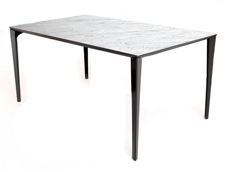 そして大塚家具でオーダー品を発見した。カコールという静岡に拠点を置く会社の製作で、イタリアのラミナム社製セラミック天板を使用している。天板は10種類ほどから、脚は2色から選べる。サイズは(天板の選択にもよるが)幅を1460mm~2400mm、奥行を450mm~950mm、高さを700mm~750mm、いずれも10mm単位でカスタマイズできる。これなら望むサイズぴったりにできる。資料をもらって帰宅し、うちの寸法を測って、これを買うことにし、後日注文した。