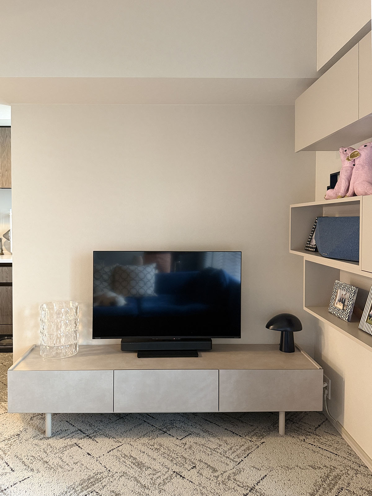 テレビボードを正面から見るとこんな感じ。
