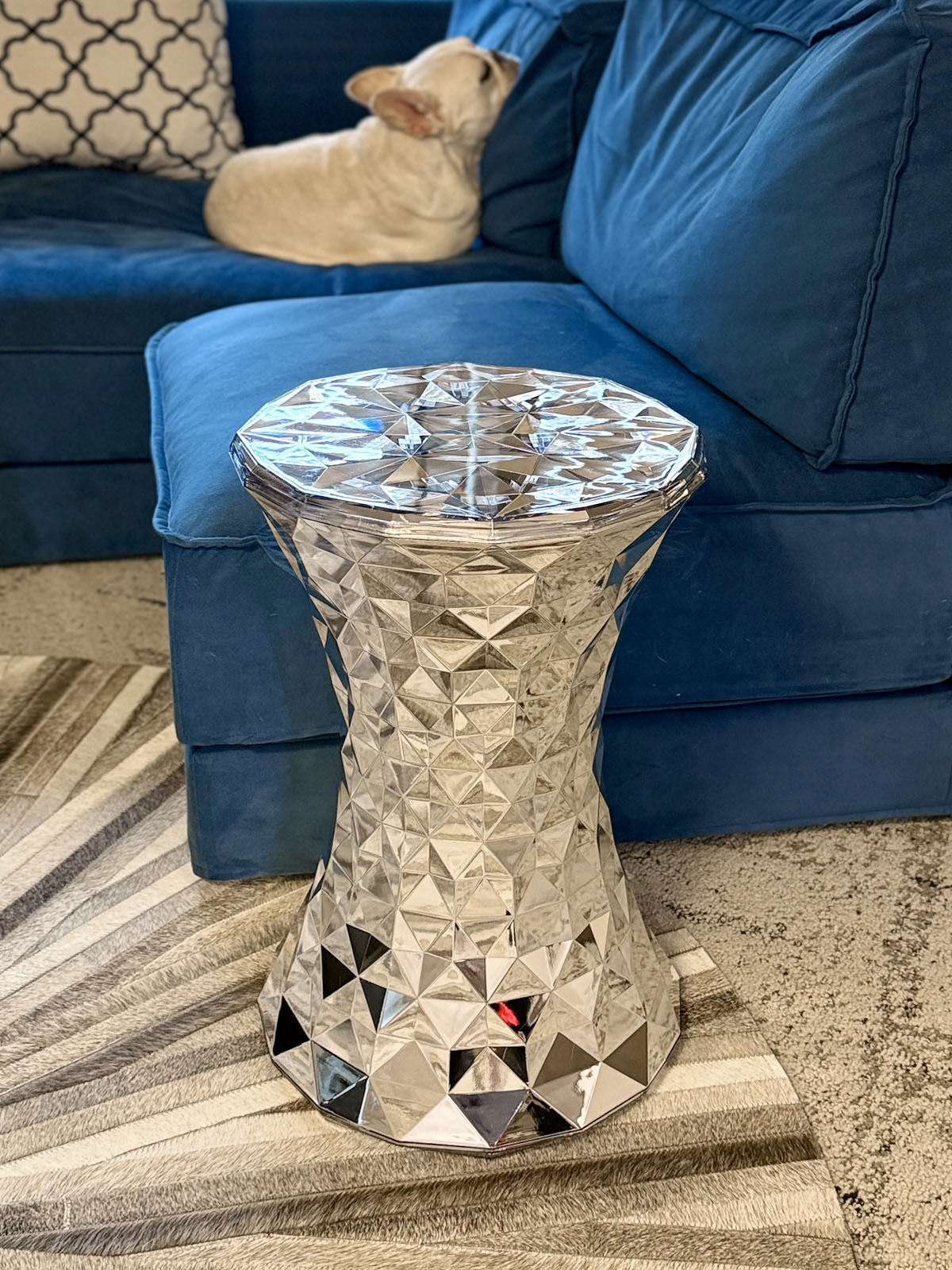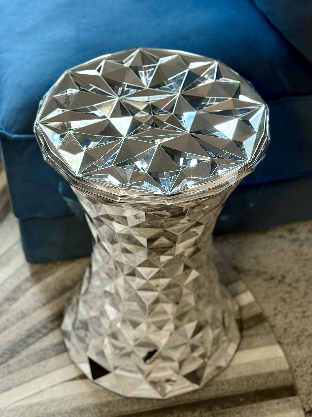 ストーンのデザイナーは、インテリアメーカーmoooiの共同設立者・ディレクターであるマルセル・ワンダース。デザイナー名で選んだのではないが、期せずして名デザイナーの製品を選ぶことになった。また、これはKartellのアイコン製品でもあるのだそうだ。名前の「ストーン」は「ジェムストーン(宝石)」を意味していて、キラキラしたラグジュアリー感が特徴なのだとか。