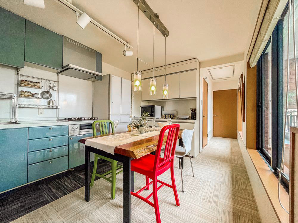ドアや窓の棧の色が明るく黄色味の強いチークだったことや、窓が多かったこと、キッチンパネルのカラーが築年当時の傾向を反映したくすんだブルーであったことなどから、そこに合うタッチの物を選んで揃えた。当時のインテリアトレンドの影響もあると思うし、二人の生活をスタートした時から徐々に物を買い替えたり揃えたりして行った累積が、旧居のテイストだった。