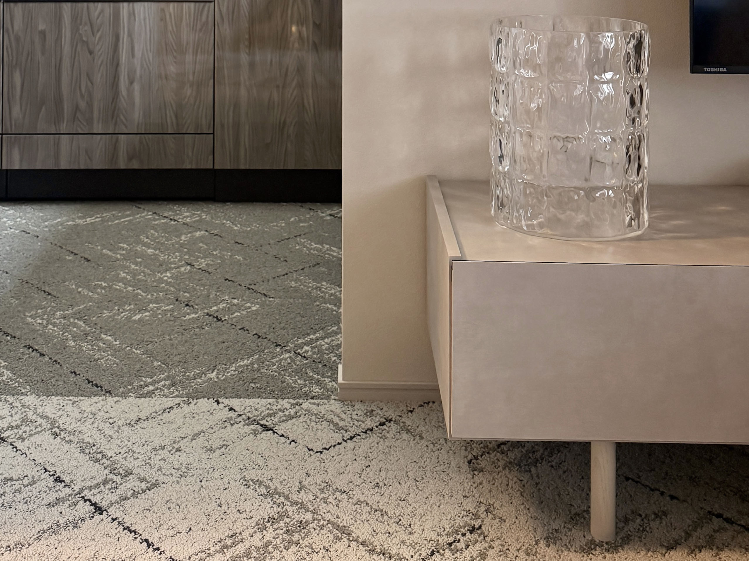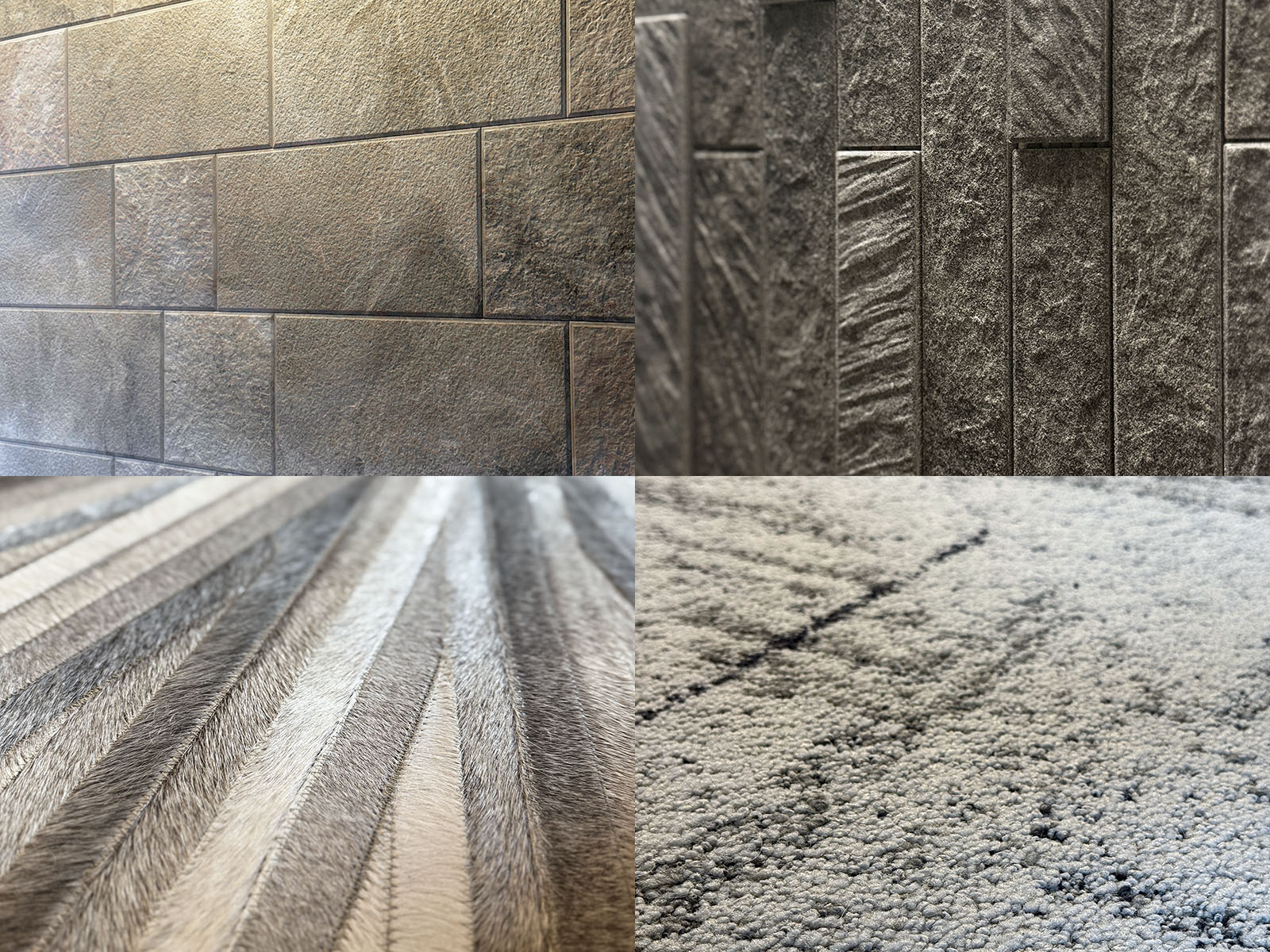 それぞれの空間に奥行きを出したい時、テクスチャーを選ぶのは重要。そして素材感は心地よさをもたらす。やりすぎると要素同士が喧嘩するので、各部とのバランスを見ながら、表情を楽しめるようにした。