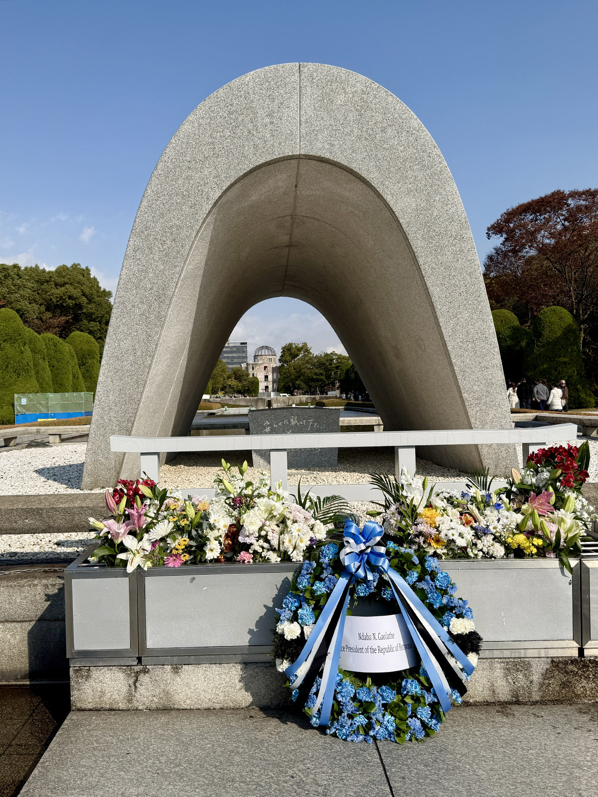 ここからずっと歩くので、休憩を挟んで次は広島平和都市記念碑(原爆死没者慰霊碑)へ。死没者名簿の眠るここを多くの人が訪れ、手を合わせていた。原爆記念日によくテレビで見るここを訪れることができて感無量だった。
