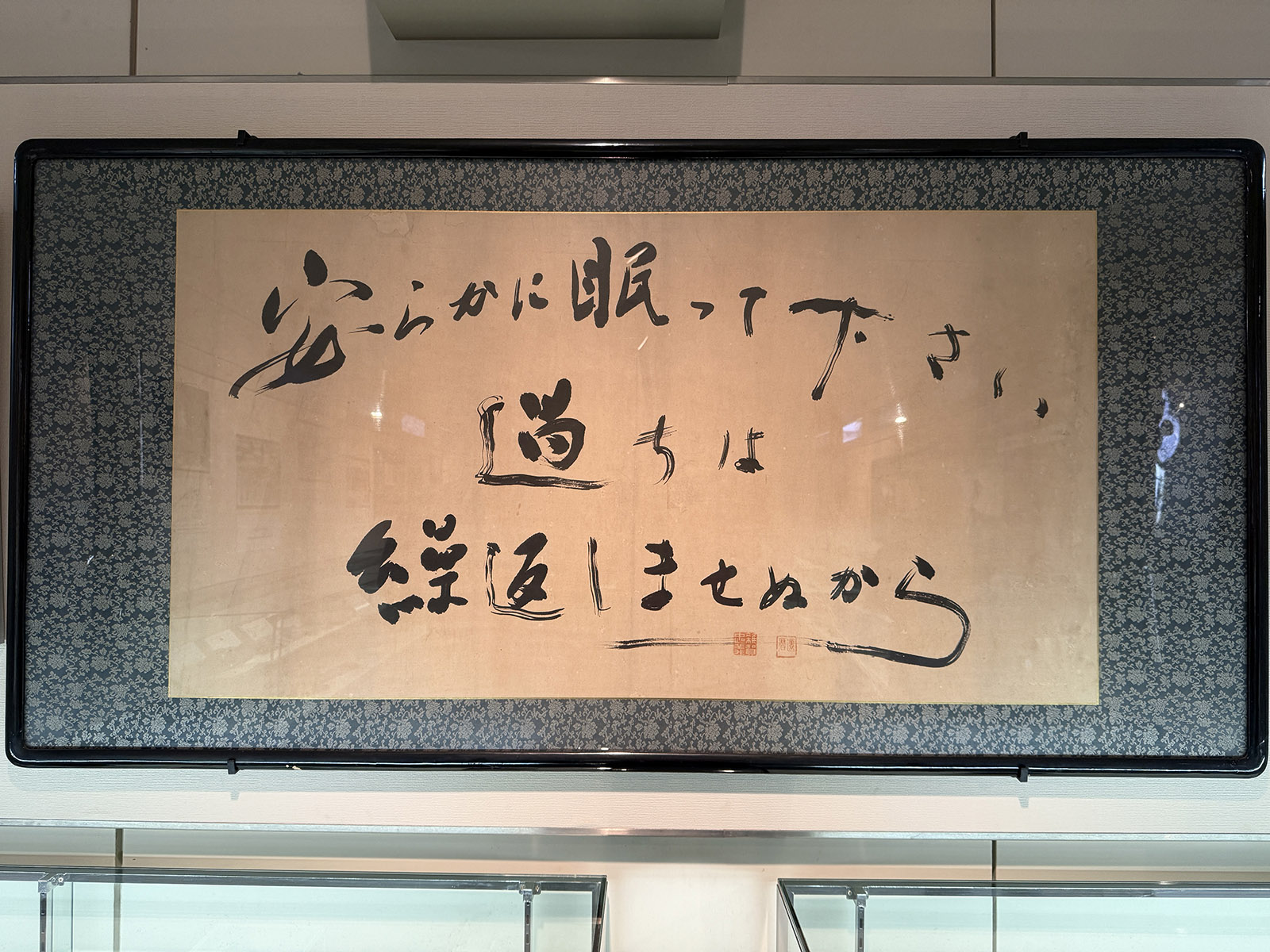 ここの後は公園内で近くにある原爆供養塔、韓国人原爆犠牲者慰霊碑も見て、一旦公園を出、原爆投下の目標地点となった相生橋を渡って、当時の建物が残る本川小学校平和資料館へ。鉄筋コンクリートの建物の地下までもが甚大な被害を受けていることにおののく。ここには原爆死没者慰霊碑に刻まれているかの有名な「安らかに眠ってください 過ちは 繰り返しませぬから」の原本が壁に飾られている。