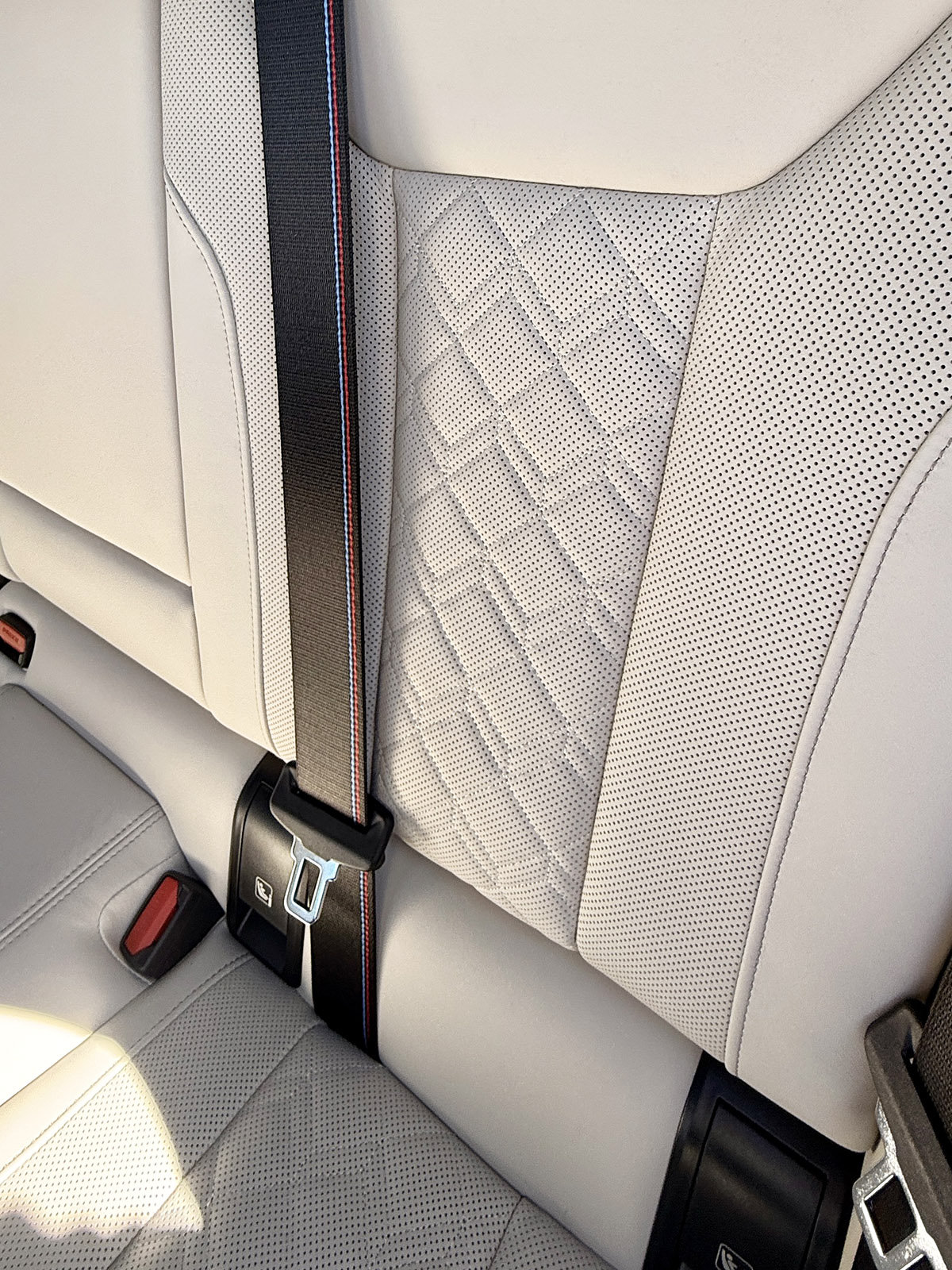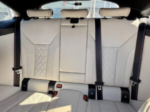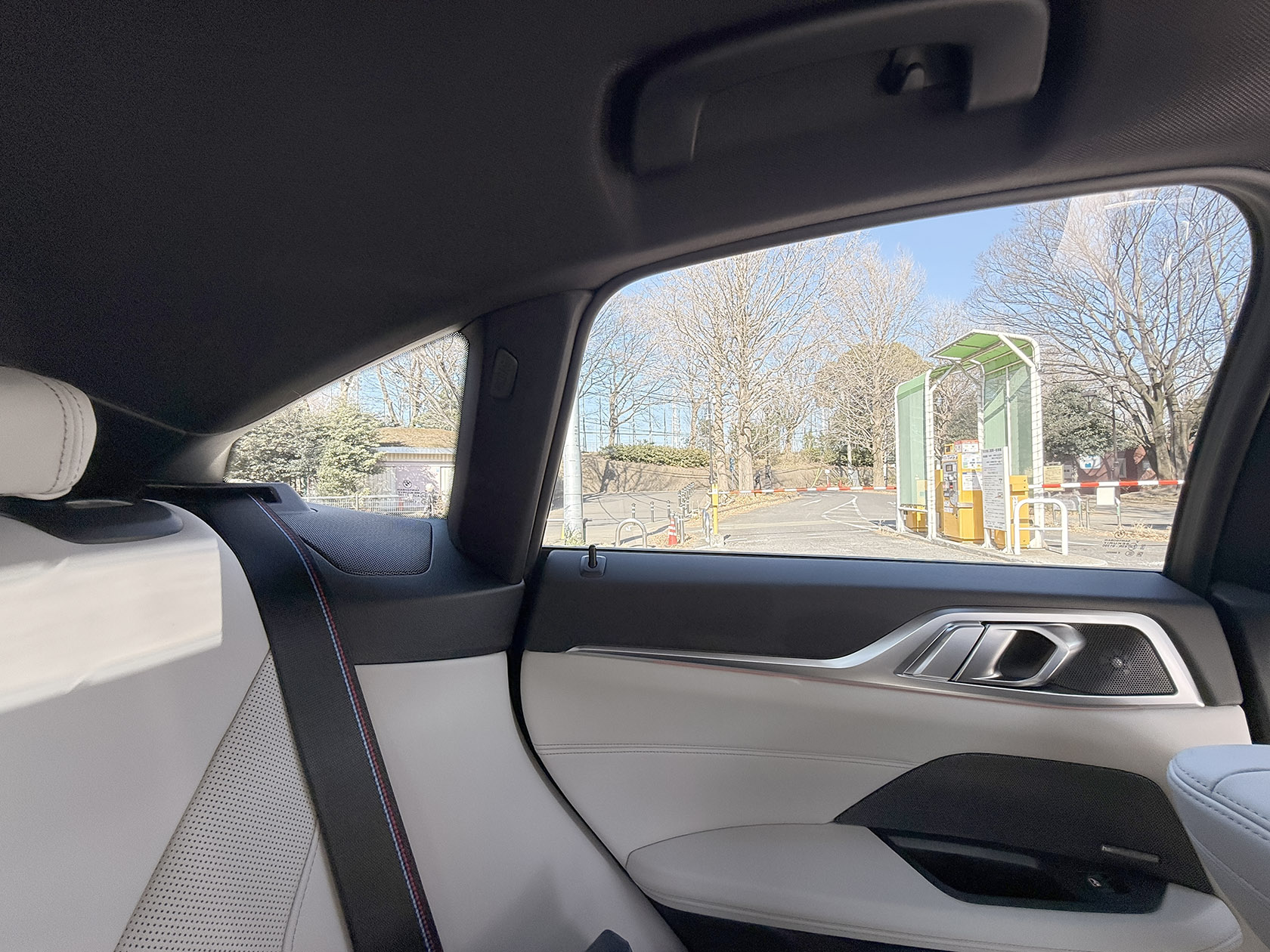 初めて後席に座ってみたが、前席の裏(ヘッドレスト裏やシートバック裏同色部分)までメリノレザーであることに気づいた。ここら辺はフル・レザーと称するだけはある。シートバック裏のシートポケットはない。
