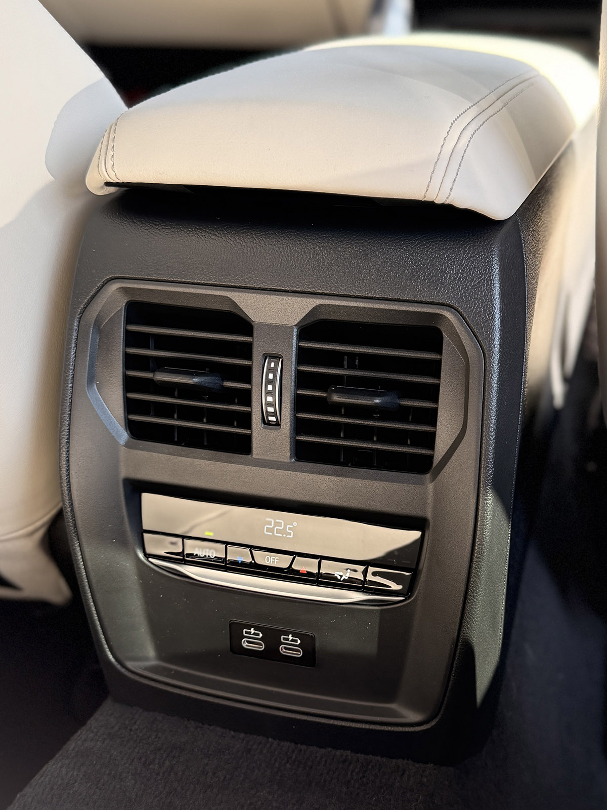 センターコンソールの後端には後席用エアコンの独立コントロール、吹き出し口、USB Type-Cジャックが2口備わっている。