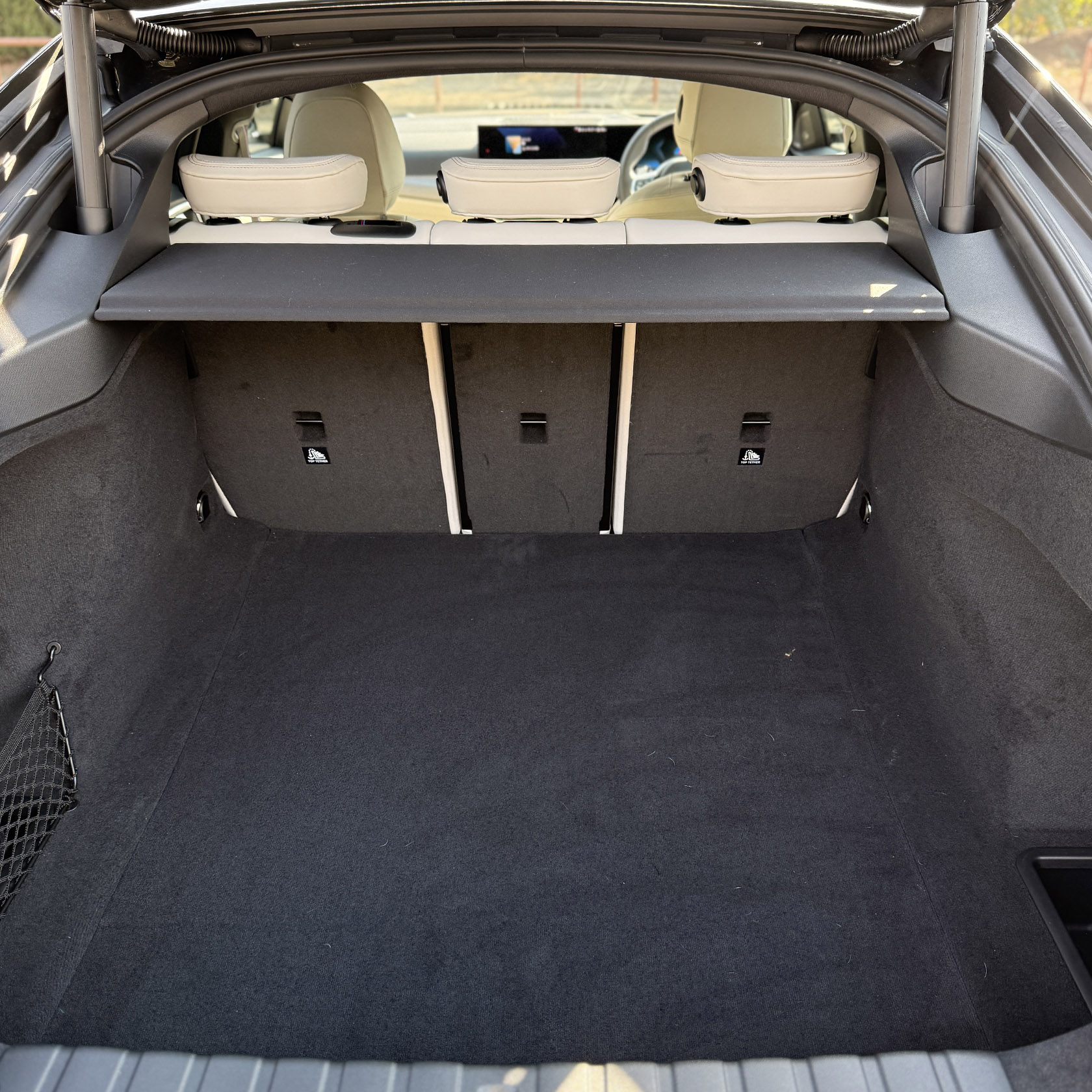 テールゲートが大きく開くが、実はトランク容量は3シリーズのツーリングでなくセダンの480リットルと比べてさえ10リットル少なく、470リットル。ただ、使いやすそうではある。電動開閉式で、キックアクションやリモコンによる開閉動作に対応している。リアシートは分割可倒式。