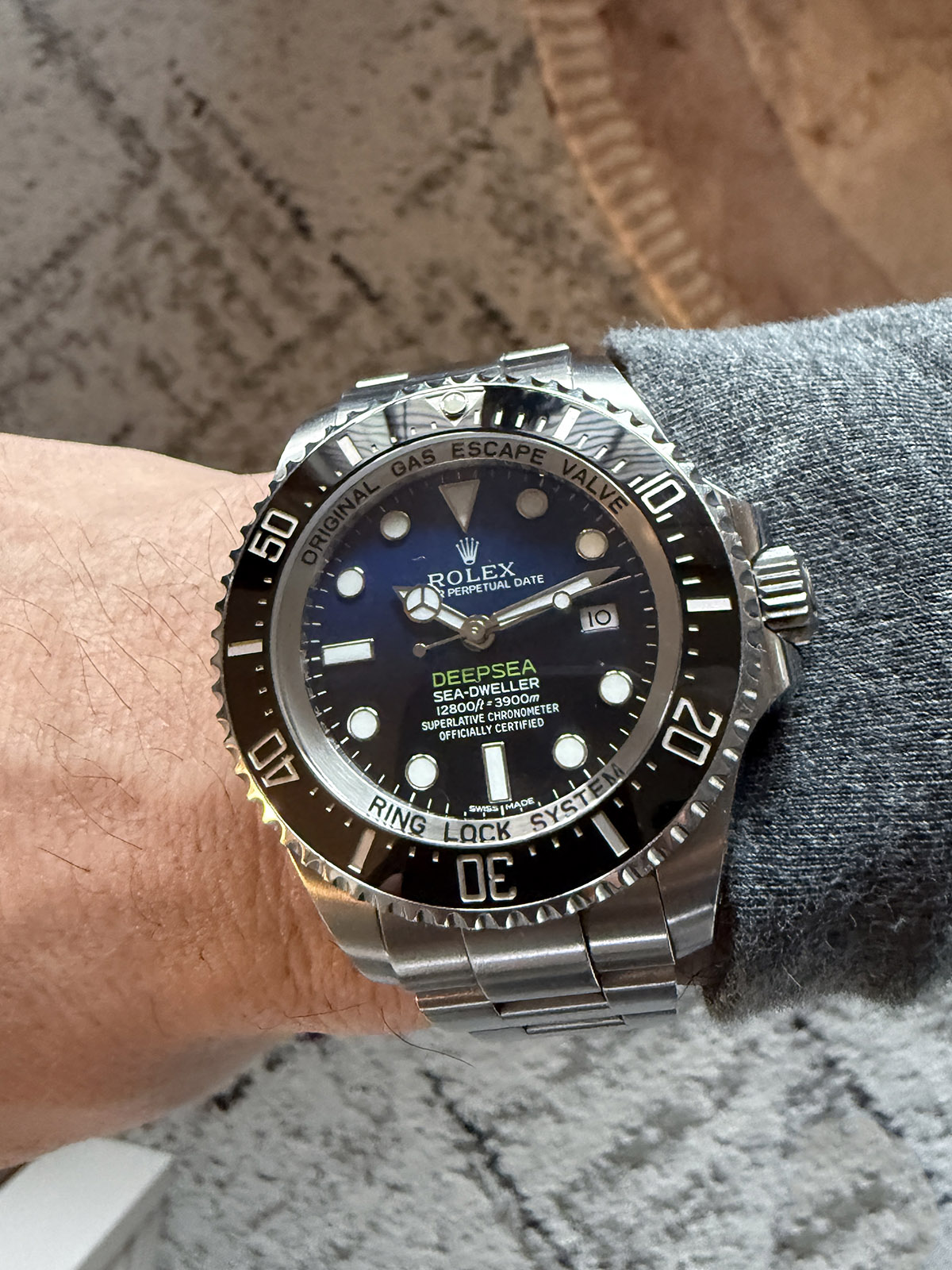 買い替える気はなかったのに買い替えざるを得ず、ブレゲ トランスアトランティックタイプXXIからロレックス ディープシーにした。以前ディープシーはシードゥエラー ディープシーと称されて、シードゥエラーの中の1モデルだったようだが、今は独立のモデル扱いのようだ。