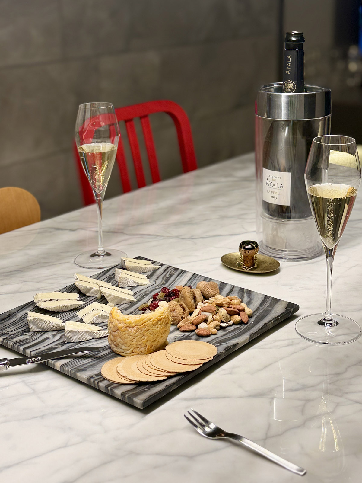 Ayalaの素晴らしさは分かっていたはずなのに、去年末に久しぶりにブラン・ド・ブランを飲んでやっとそれを思い出した。そのブラン・ド・ブランと同じ時に買い、今回我が家の引越し1周年にお祝いで飲んだのが、La Perle 2013だ。