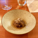 料理の出てくるスピードは淀みなく、我々は席で適度に会話を楽しみながらスムーズに食事ができた。シェフのタトゥーに少し身構えたが、人当たりも良く、接客も極丁寧。コミュニケーションにも長けている。
