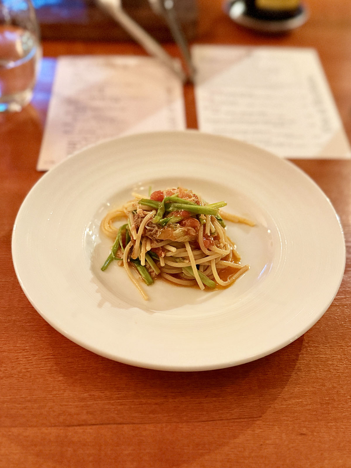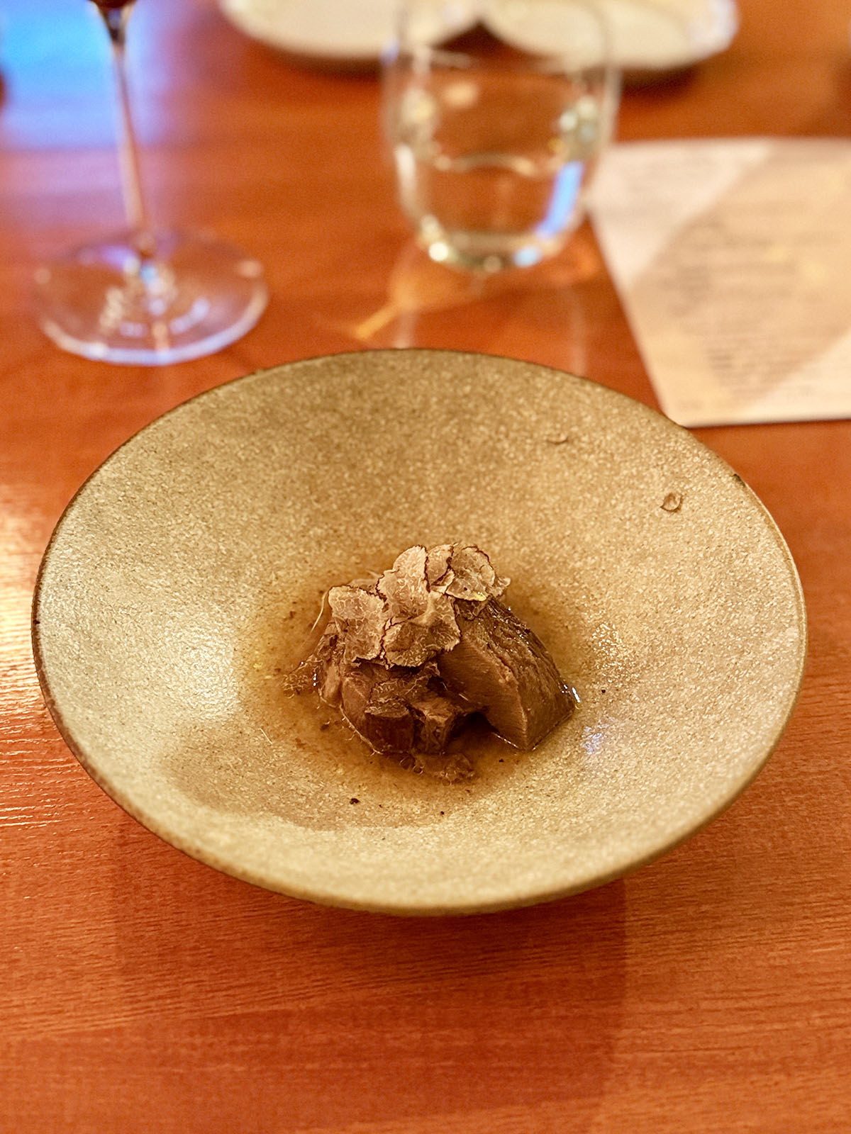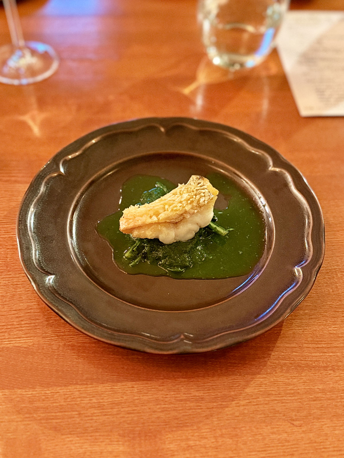 コースのそれぞれの料理はもちろん絶品で、魚や肉はフレンチのファインダイニングでもかくや、という仕上がり。ペアリングされたワインも味の組合せで吟味されており、それぞれの料理の味わいを倍加させてくれるもの。気楽に楽しめればと思っての訪問だったが、予想をいい意味で大きく裏切った。メニューカードもきちんと用意されていた。