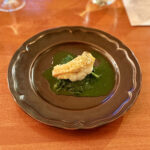 訪れてふと思い出したのだが、確か以前、同じ場所にフレンチレストランがあって、一度来たことがある。落ち着いた場所で窓から見える景色を見て思い出した。当然、店が違えば全く料理も違うのだが、今回コースを予約し、ワインのペアリングも頼んだ。