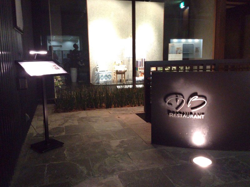 地下1階はウェイティングバー兼シャンパンバー。DB自らの名前を冠したハウスシャンパンのナビュコドノゾールの瓶がどんとしつらえられた一枚板のカウンターが印象的。レストランはそこから更に地下に下がったフロアーにある。シンプルなデザインながらどこか温かみと落ち着きを感じさせる空間。