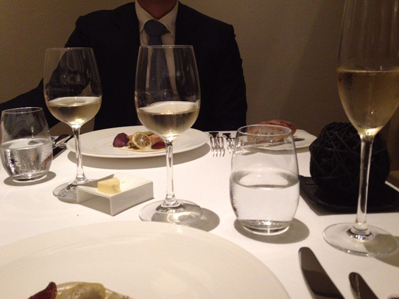 レストランに入った時に、バーにちょうどシェフご本人がいらっしゃって挨拶し、更に帰りには奥様(日本人の美しい方だった)もいらっしゃって、呼んでもらったタクシーを待つ間、しばし歓談した。お二人とも感じのいい方。そしてシャンパンが大好きというのもいい。ここは味や趣向に通じている人で、シャンパン好き、かつリラックスした新しい高級感を感じたい人にお勧めの店。(2014/6/3 記)